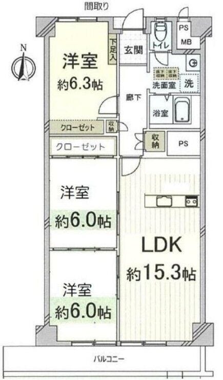 | 専有面積 | 壁芯 78.06㎡ | 所在階 | 7階建/6階部分 |