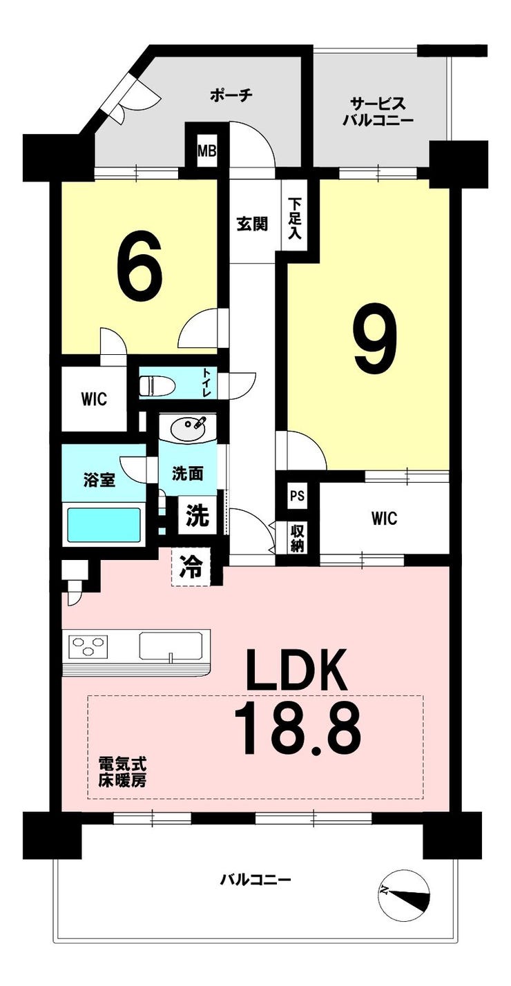 | 専有面積 | 壁芯 77.98㎡ | 所在階 | 15階建/9階部分 |