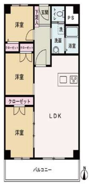 | 専有面積 | 壁芯 66.23㎡ | 所在階 | 11階建/3階部分 |