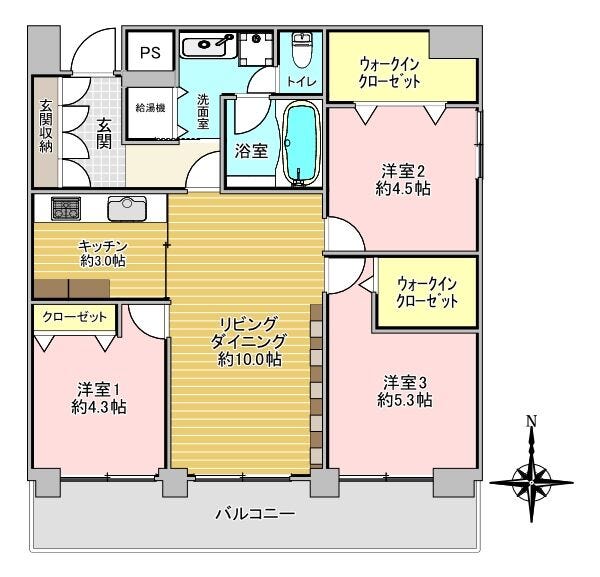 | 専有面積 | 壁芯 63.29㎡ | 所在階 | 10階建/3階部分 |