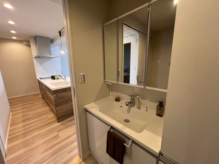 最大の魅力は、遮るもののないリバービュー。20.7畳もの広々としたLDKは南向きで、一日中柔らかな陽光に満たされます。開放的なフルフラットキッチンや、全居室に完備された収納など、機能美も追求。さらに広々としたバルコニーにはスロップシンク(水道)を備え、ガーデニングやペットのお世話にも最適です。