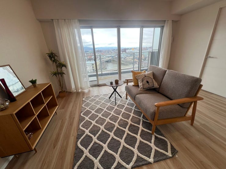 【90㎡超×リバービュー】令和8年2月リノベ。陽光注ぐ南向き角住戸、20畳超のLDKでペットと憩う。
