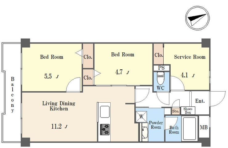 | 専有面積 | 壁芯 55.62㎡ | 所在階 | 7階建/7階部分 |