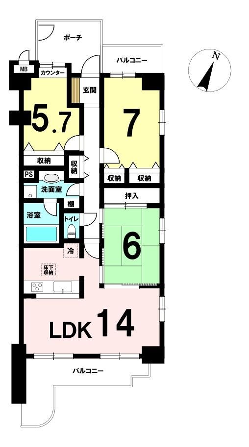 | 専有面積 | 77.59㎡ | 所在階 | 9階建/3階部分 |