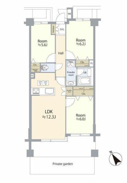 | 専有面積 | 壁芯 64.59㎡ | 所在階 | 5階建/1階部分 |