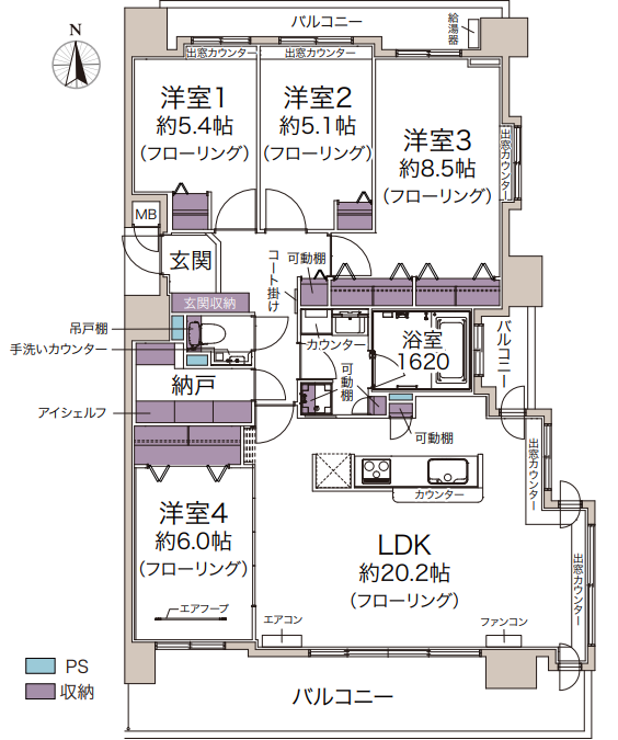 - 2面バルコニー