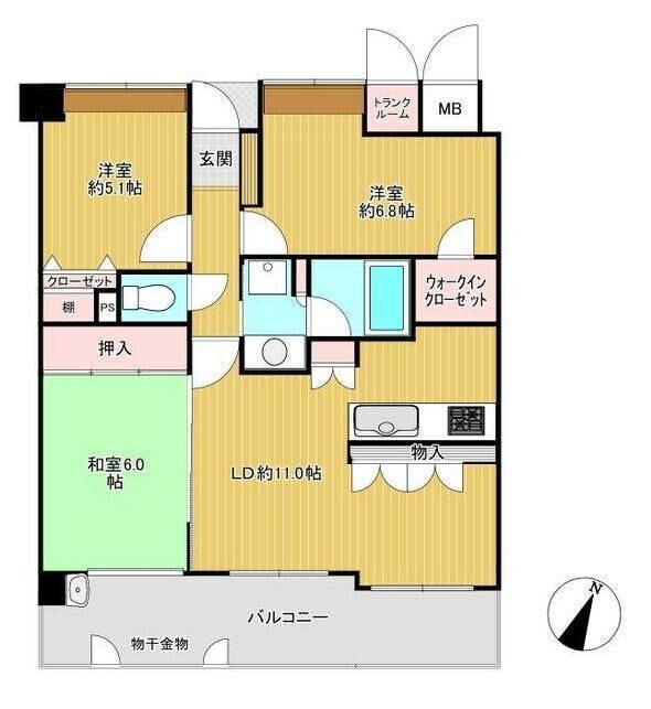 | 専有面積 | 壁芯 68.67㎡ | 所在階 | 12階建/7階部分 |