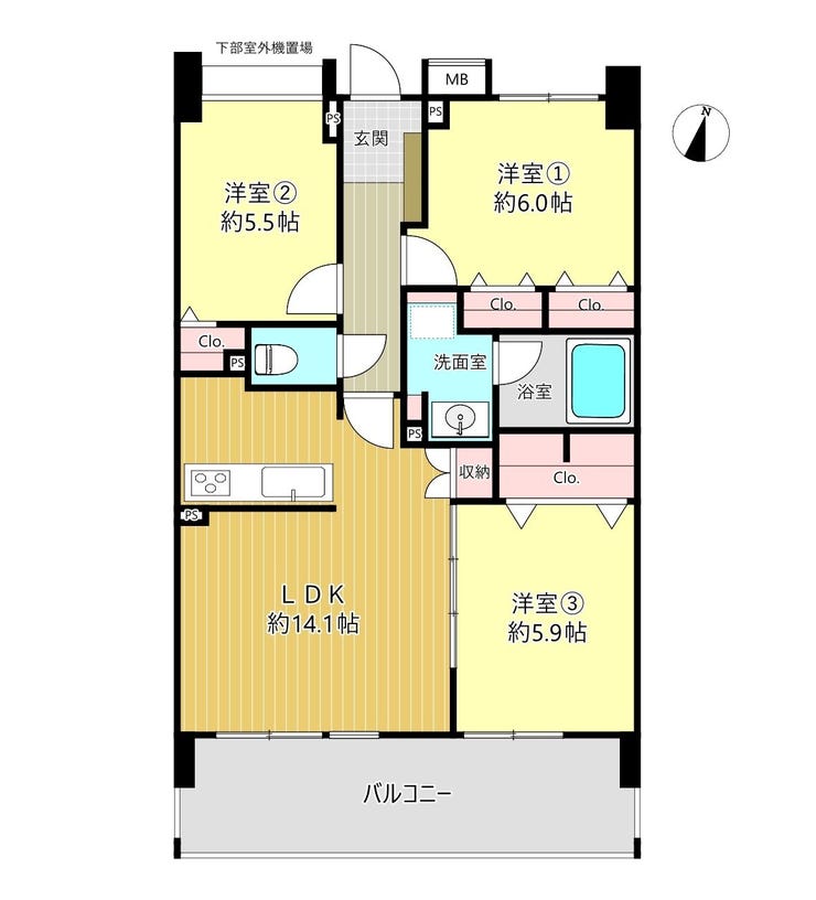 | 主要採光 | 南向 | バルコニー | 南向12.60㎡ |