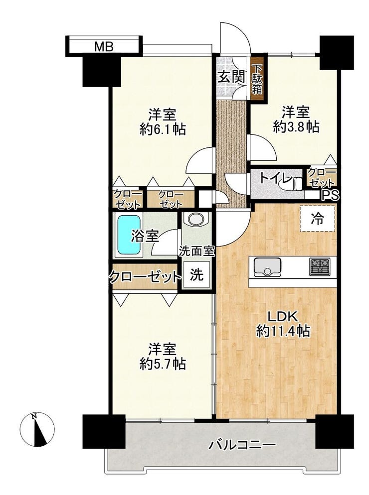 | 専有面積 | 壁芯 58.98㎡ | 所在階 | 14階建/3階部分 |