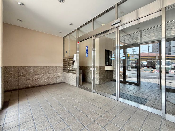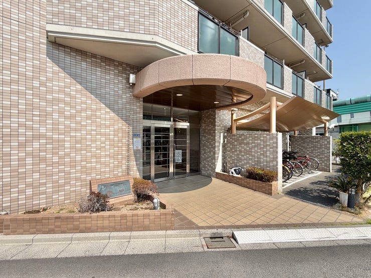 外観はベージュのタイル貼りで、エントランスは広い面積の開口部を取り、ガラスの扉を使い、エントランスホールに明るく光が差し込んでいます。住戸は2階からで、各階3戸の配置で角住戸率は64%で、プライベートを大切にしながら毎日の暮らしを楽しめるようになっています。住戸には人造大理石トップのシステムキッチンや洗面台が使われ、高級感を出しています。ペットの飼育は細則付きですが可能です。