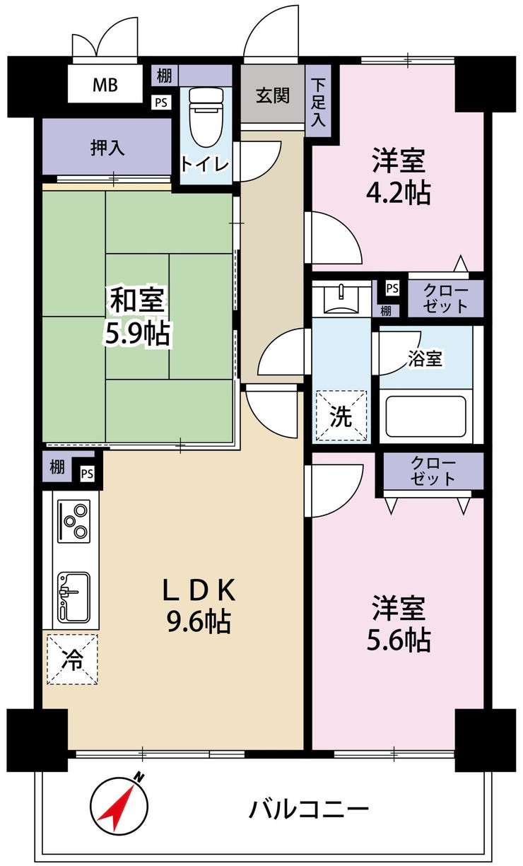| 主要採光 | 南西向 | バルコニー | 南西向9.15㎡ |