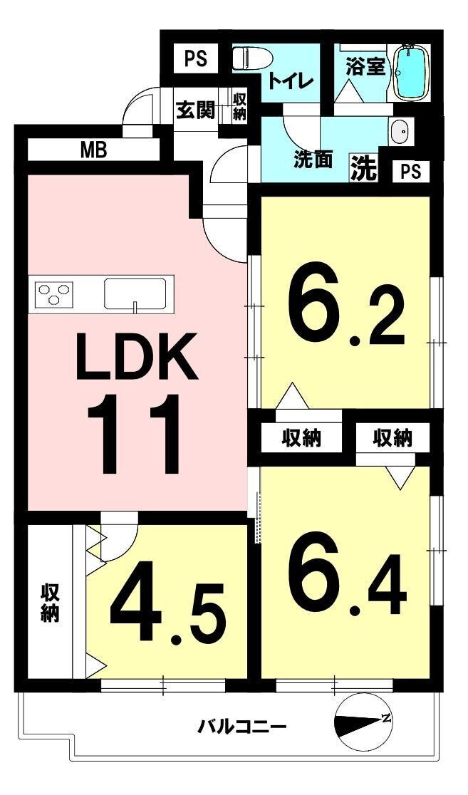 | 専有面積 | 壁芯 65.00㎡ | 所在階 | 9階建/4階部分 |