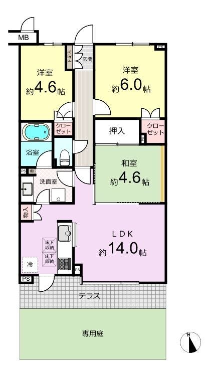 | 専有面積 | 壁芯 65.90㎡ | 所在階 | 5階建/1階部分 |