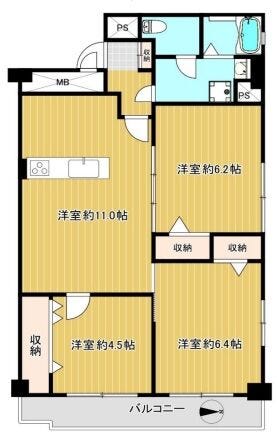 | 専有面積 | 壁芯 65.00㎡ | 所在階 | 9階建/4階部分 |