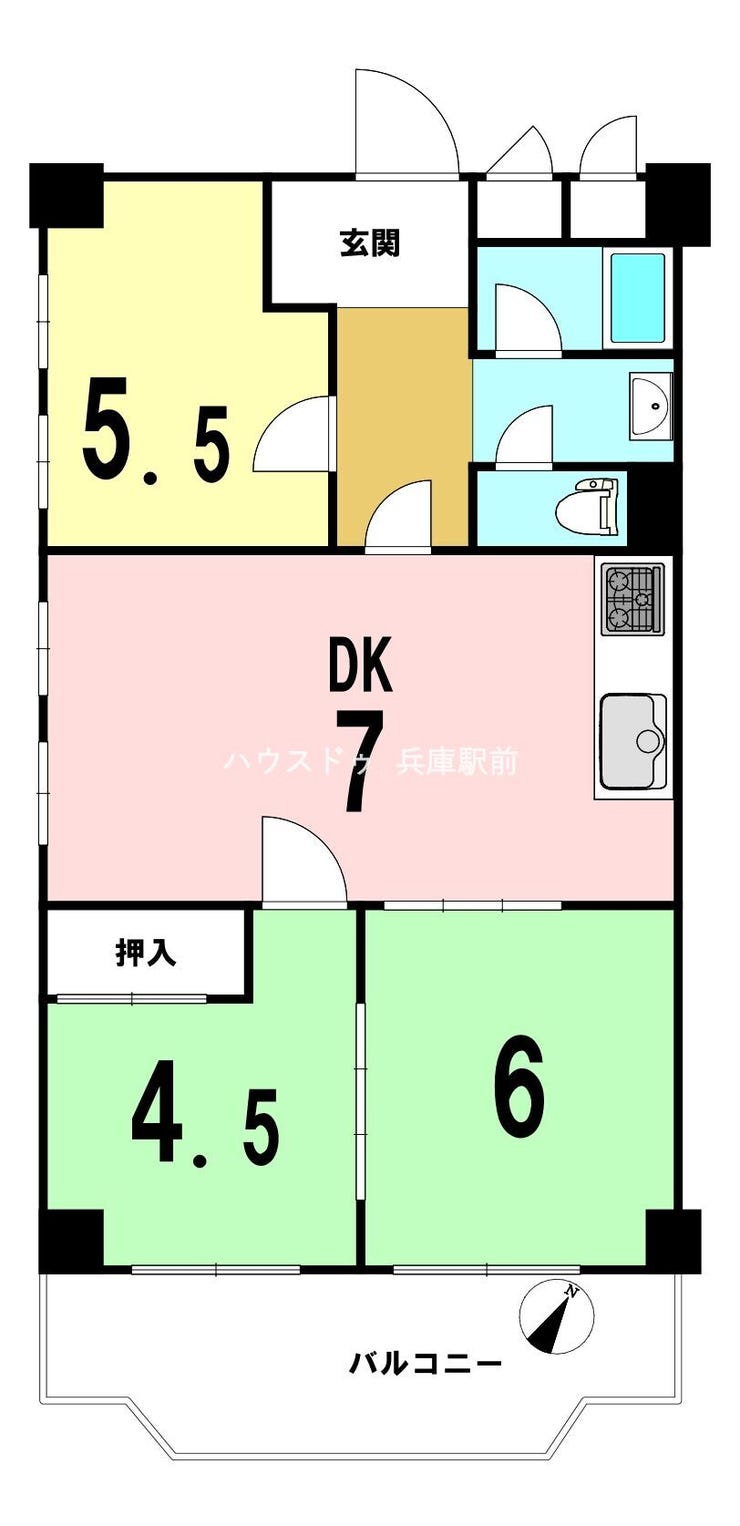 【1,190万円で叶える神戸ライフ】3駅が徒歩10分圏内、利便性の良い3DK・角部屋物件!