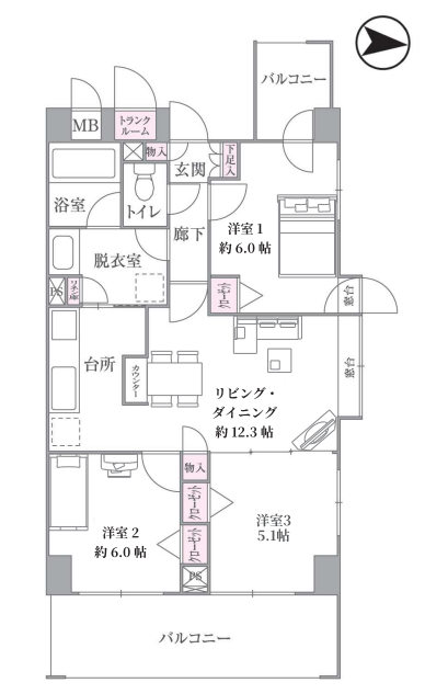 - 2面バルコニー