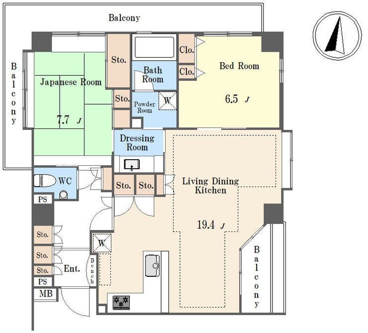 - 2面バルコニー