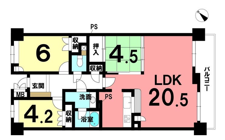 | 主要採光 | 南向 | バルコニー | 南向10.23㎡ |