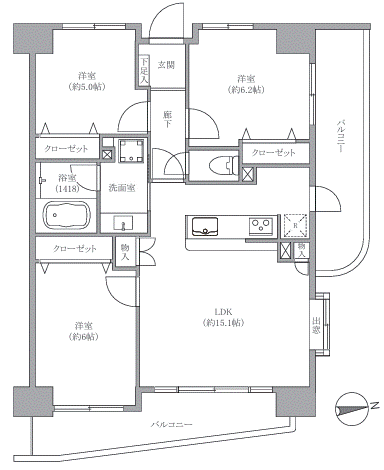 | 主要採光 | バルコニー | 東向17.80㎡ | |