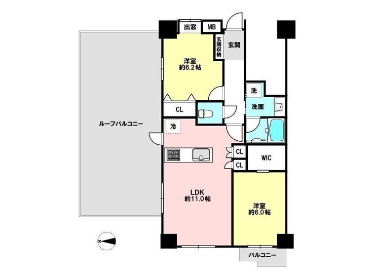 | 主要採光 | 北向 | バルコニー | 西向2.46㎡ |