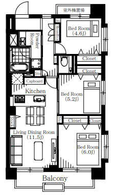 | 専有面積 | 壁芯 61.05㎡ | 所在階 | 8階建/7階部分 |