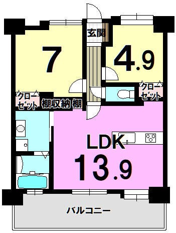 | 専有面積 | 壁芯 59.19㎡ | 所在階 | 14階建/13階部分 |