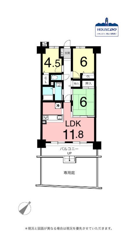 南向・専用庭付き・3LDK!宝マンション鳴子