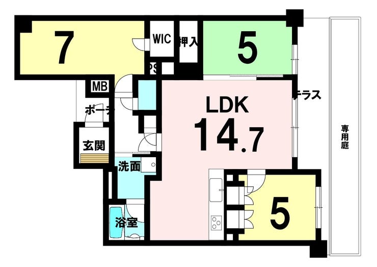 | 専有面積 | 壁芯 69.69㎡ | 所在階 | 7階建/1階部分 |