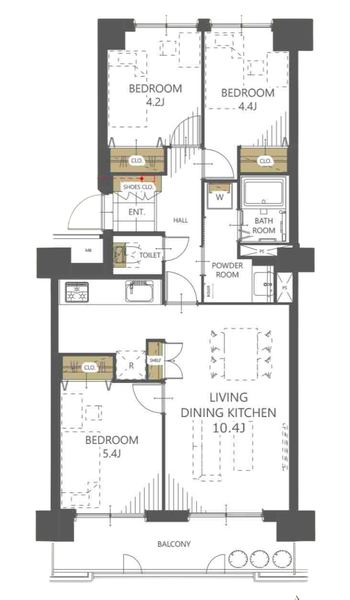 | 専有面積 | 壁芯 66.04㎡ | 所在階 | 8階建/3階部分 |