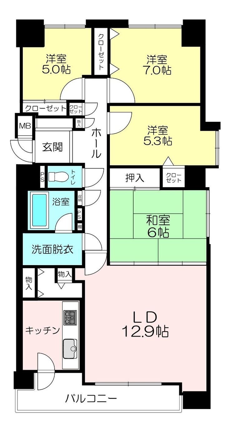 | 専有面積 | 壁芯 90.66㎡ | 所在階 | 14階建/5階部分 |