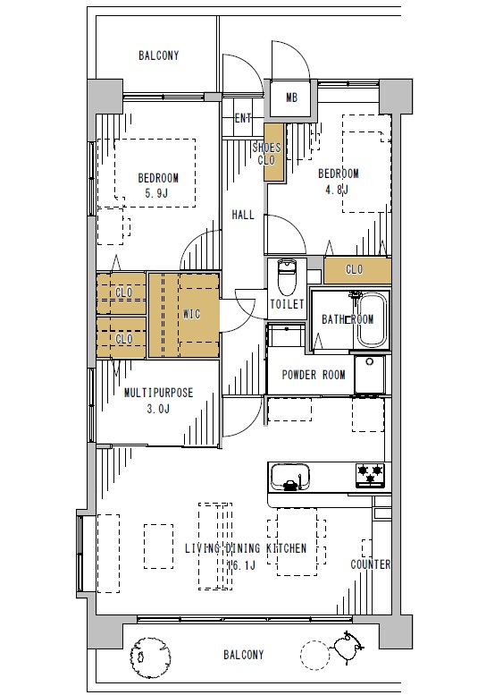| 主要採光 | バルコニー | 13.36㎡ | |
