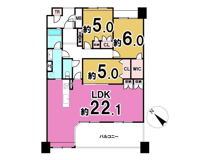 〇LDK22帖とゆとりある広さ
