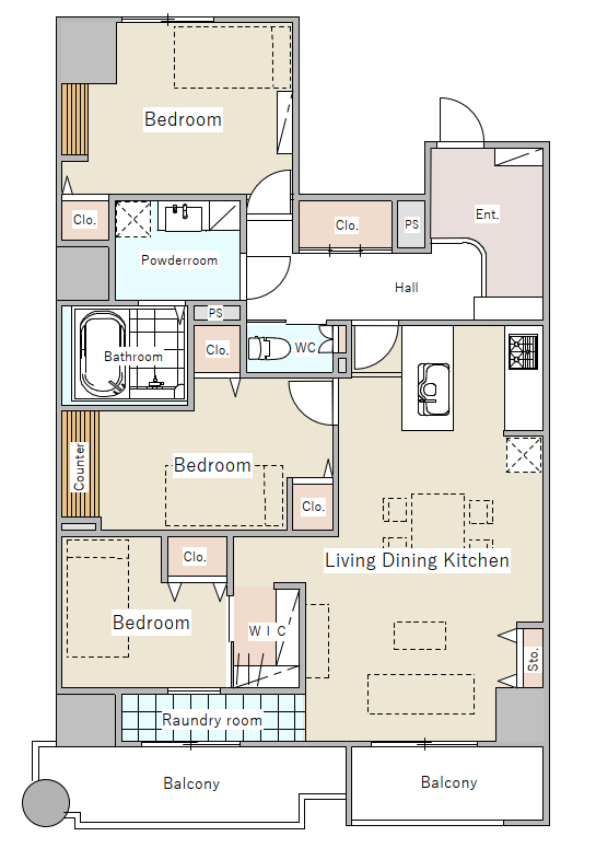 | 主要採光 | バルコニー | 12.36㎡ | |