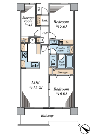 | 主要採光 | 南西向 | バルコニー | |