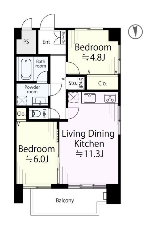| 主要採光 | 北向 | バルコニー | 北向5.53㎡ |