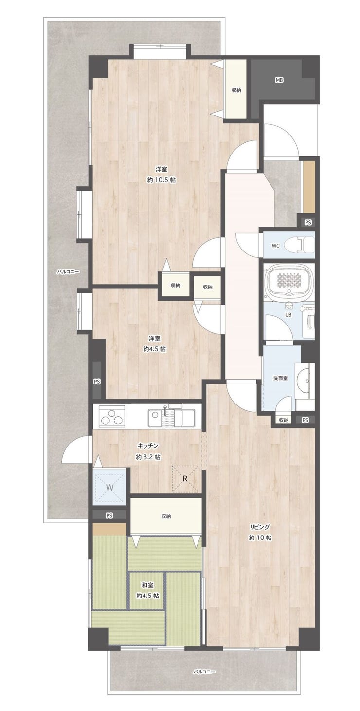 - 2面バルコニー