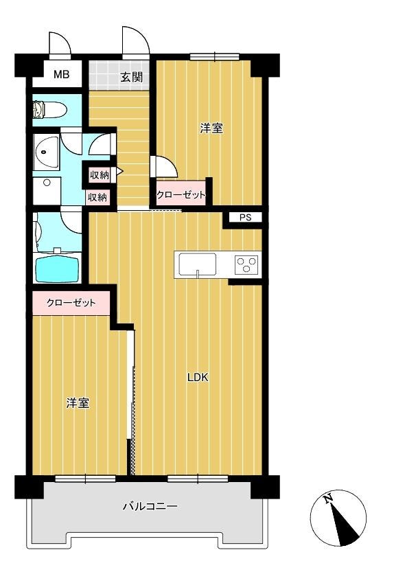 | 専有面積 | 壁芯 55.44㎡ | 所在階 | 7階建/2階部分 |