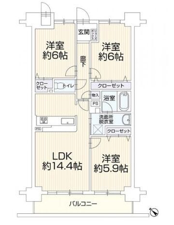 | 主要採光 | 南西向 | バルコニー | |