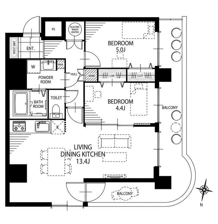 - 2面バルコニー