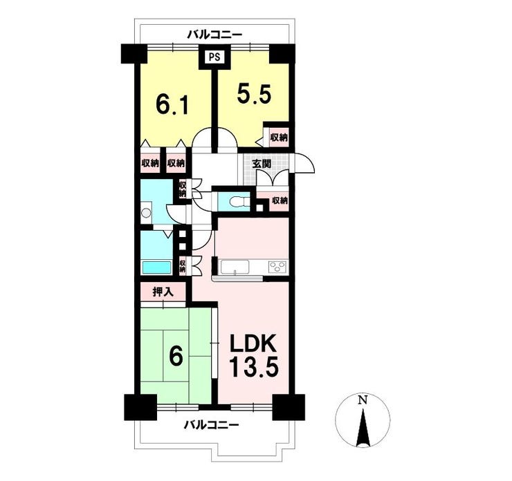 | 専有面積 | 壁芯 70.51㎡ | 所在階 | 15階建/6階部分 |
