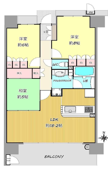 | 専有面積 | 壁芯 80.41㎡ | 所在階 | 14階建/8階部分 |