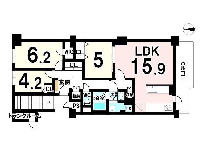 | 専有面積 | 壁芯 77.10㎡ | 所在階 | 9階建/5階部分 |
