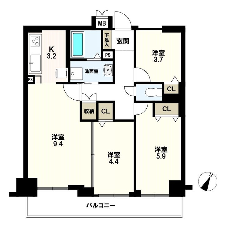 | 主要採光 | 南東向 | バルコニー | 南東向8.48㎡ |