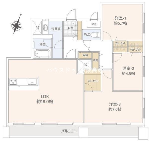 | 主要採光 | 南東向 | バルコニー | |