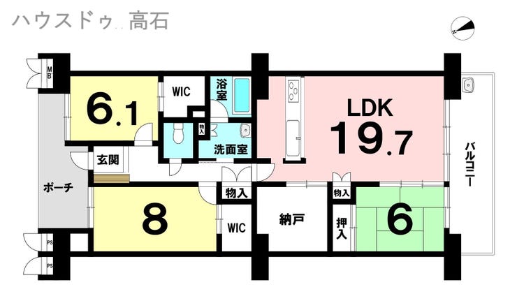 | 専有面積 | 壁芯 98.81㎡ | 所在階 | 8階建/6階部分 |
