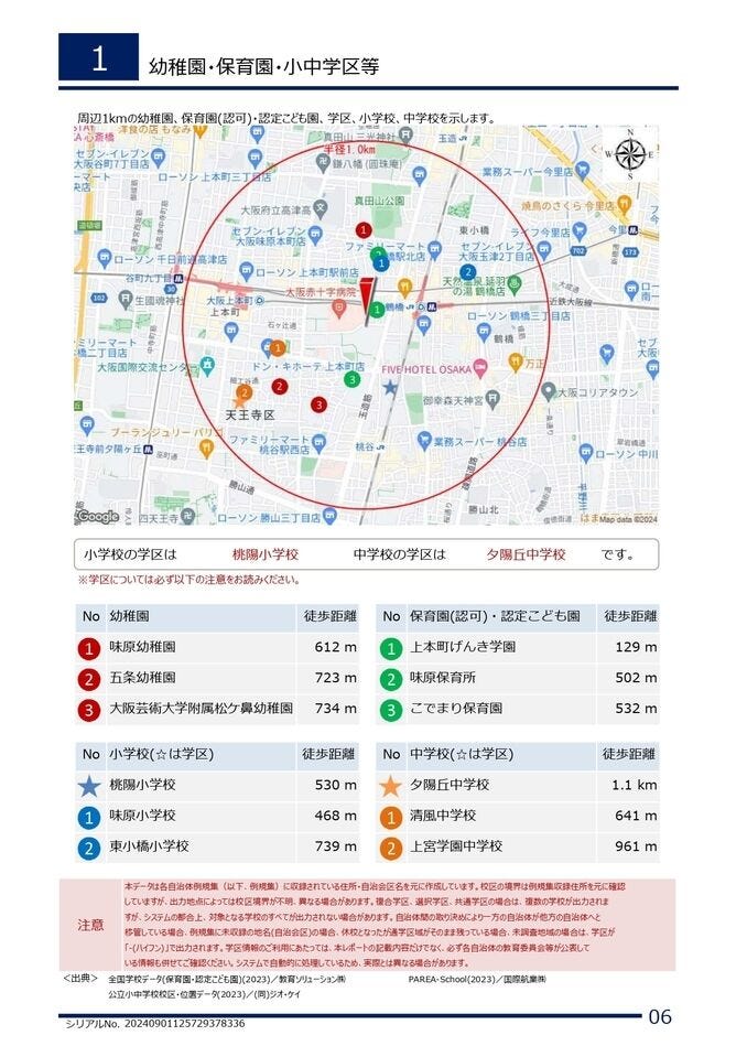 | 小学区 | 桃陽小学校 徒歩7分 (約530m) | 中学区 | 夕陽丘中学校 徒歩14分 (約1100m) |