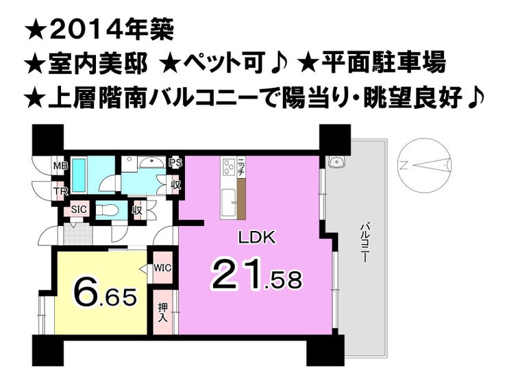 ■2014年築 ■ペット可 ■平面駐車場 ■室内美邸 ■上層階南バルコニーで陽当り・眺望良好