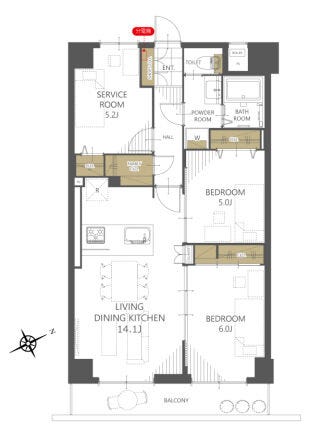 | 主要採光 | 南東向 | バルコニー | 南東向7.56㎡ |
