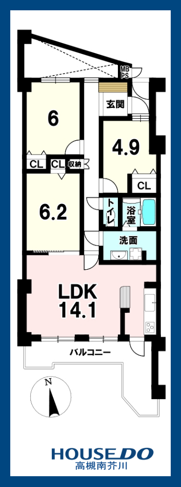 | 主要採光 | 南向 | バルコニー | 南向13.18㎡ |