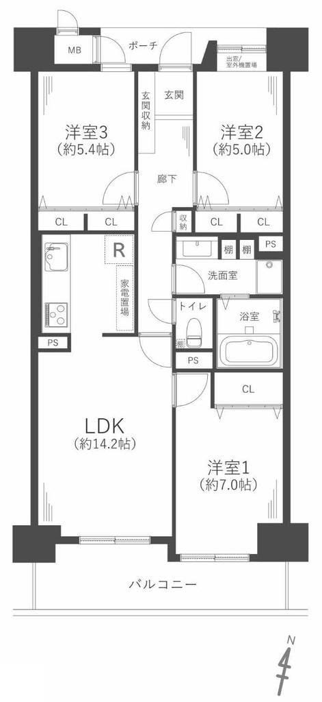 | 専有面積 | 壁芯 74.07㎡ | 所在階 | 10階建/2階部分 |